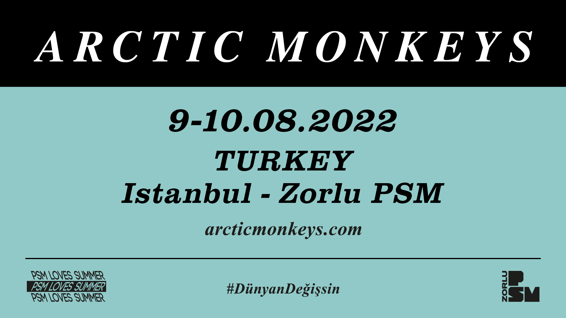 Yeni bir albüm çıkarma hazırlığında olan Arctic Monkeys, Türkiye’ye geliyor! Alex Turner ve arkadaşları, PSM Loves Summer kapsamında 9 ve 10 Ağustos’ta Zorlu PSM Turkcell Sahnesi'nde hayranlarıyla buluşacak.